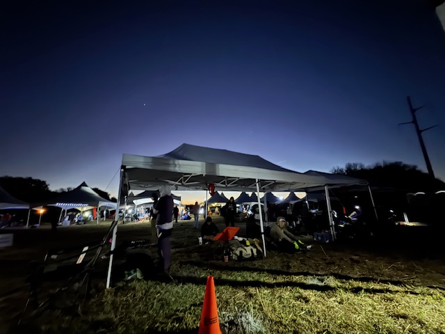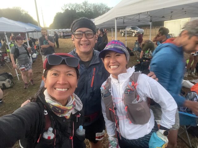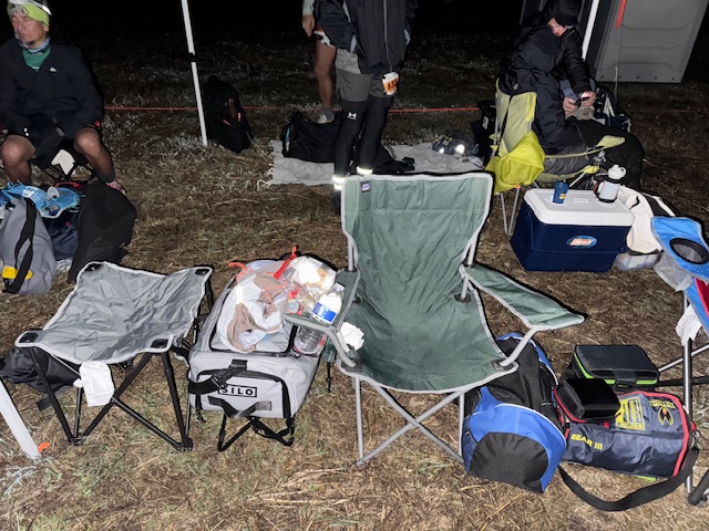 I knew very little going in, other than learning later that it’s a Western States qualifier, which explained the large field. As a bonus, two Bay Area friends, Karen and James, were racing too. It was also my first time doing a race screwed (no crew, no pacers), so we shared camping chairs and a stool in the solo-runners’ tent. Perfect setup for pre-race and mid-race, but not so perfect afterward when I was cold, exhausted, and moving at a prehistoric pace.