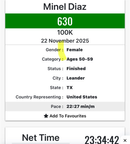 I crossed the line in 23 hours 30 minutes, exhausted, shivering, stomach still protesting, and legs completely Dino-sore. With no crew, no pacers, and a stubborn body, it took every bit of grit I had.